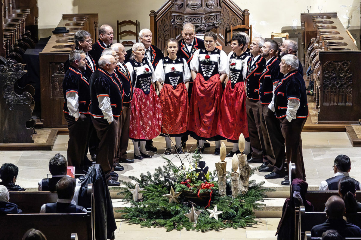 Murten | Traditionell gibt der Jodlerklub Echo vom Bodemünzi Murten jeweils in der Adventszeit ein Konzert. So war es letzten Sonntag wieder so weit, und zahlreiche Besuchende fanden sich in der Deutschen Kirche Murten ein. Der Jodlerklub und der Gastchor Choeur des Artilleurs de la Glâne begeisterten mit warmen, herzlichen Klängen. Die Organistin Yeon-Jeong Müdespacher umrahmte das Konzert, und zum Ausklang sangen alle gemeinsam das Weihnachtslied «Stille Nacht».