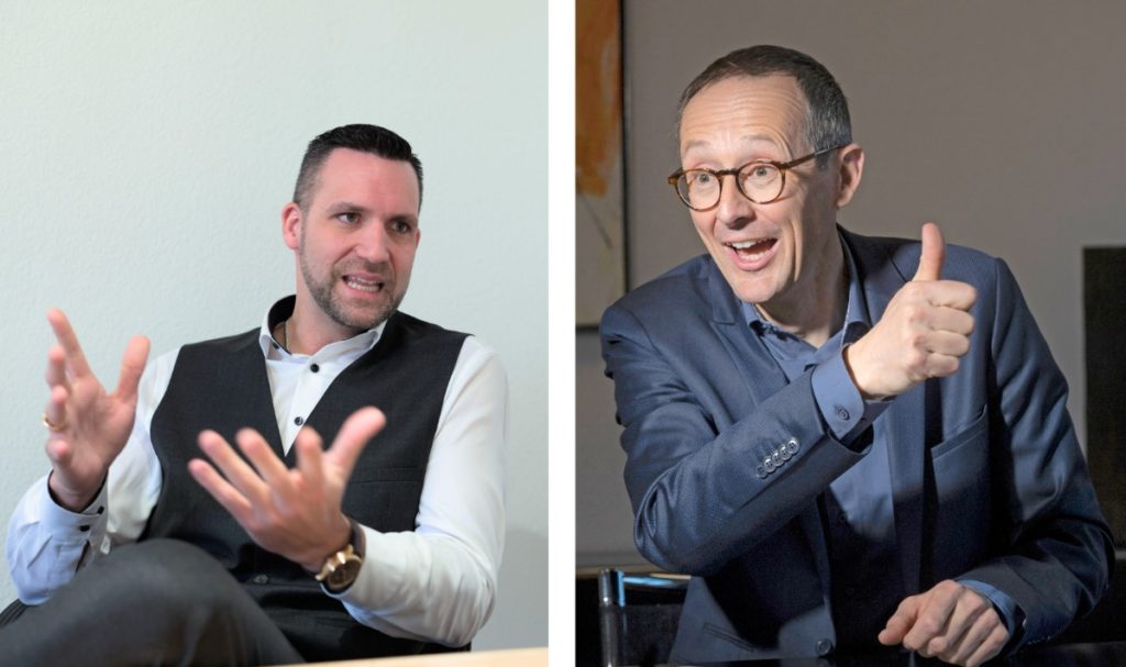 Kanton | Staatsrat Olivier Curty (Mitte) und Oberamtmann Christoph Wieland (FDP) werden kaum bedrängt.