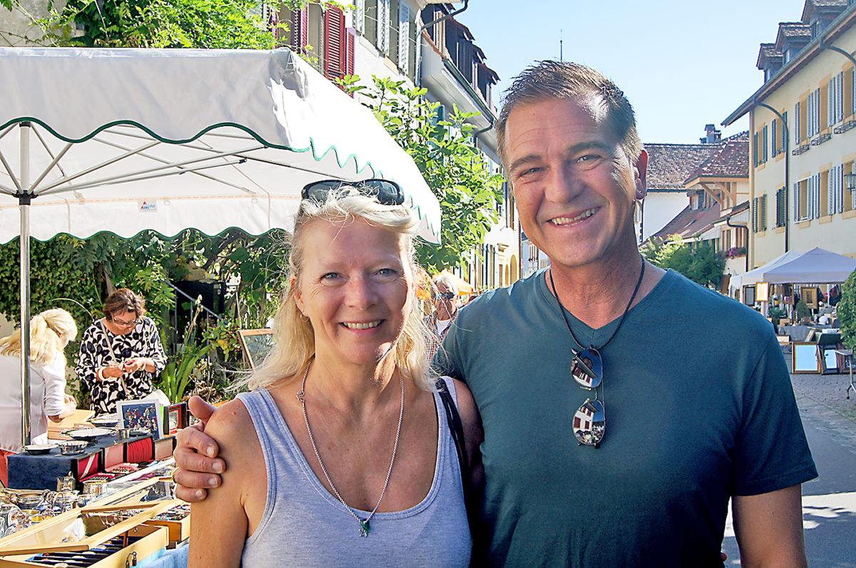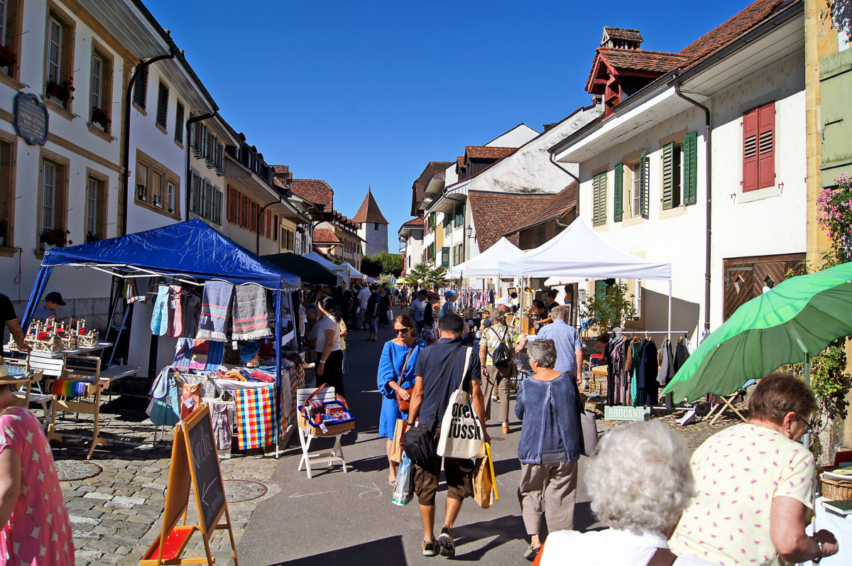 Murten | Am vergangenen Samstag fand die Kunsthandwerk-Brocante in Murten ein weiteres Mal grossen Anklang bei den Besucherinnen und Besuchern. Bereits am Vormittag flanierten viele Menschen bei angenehmen Temperaturen durch die Gassen und bestaunten das vielfältige Angebot. Haushaltsartikel, alte Stühle, vergoldete Spiegel, Kunstbilder, selbst gemachter Schmuck, Raritäten und Trouvaillen aus längst vergessener Zeit und noch viel mehr wurde den Staunenden angeboten. Sogar Mini-Webstühle zum Schnuppern für Kinder und Jugendliche waren ganz neu an einem Stand zu finden. Die zufriedene, lebendige und spannende Stimmung lud zum Verweilen ein.