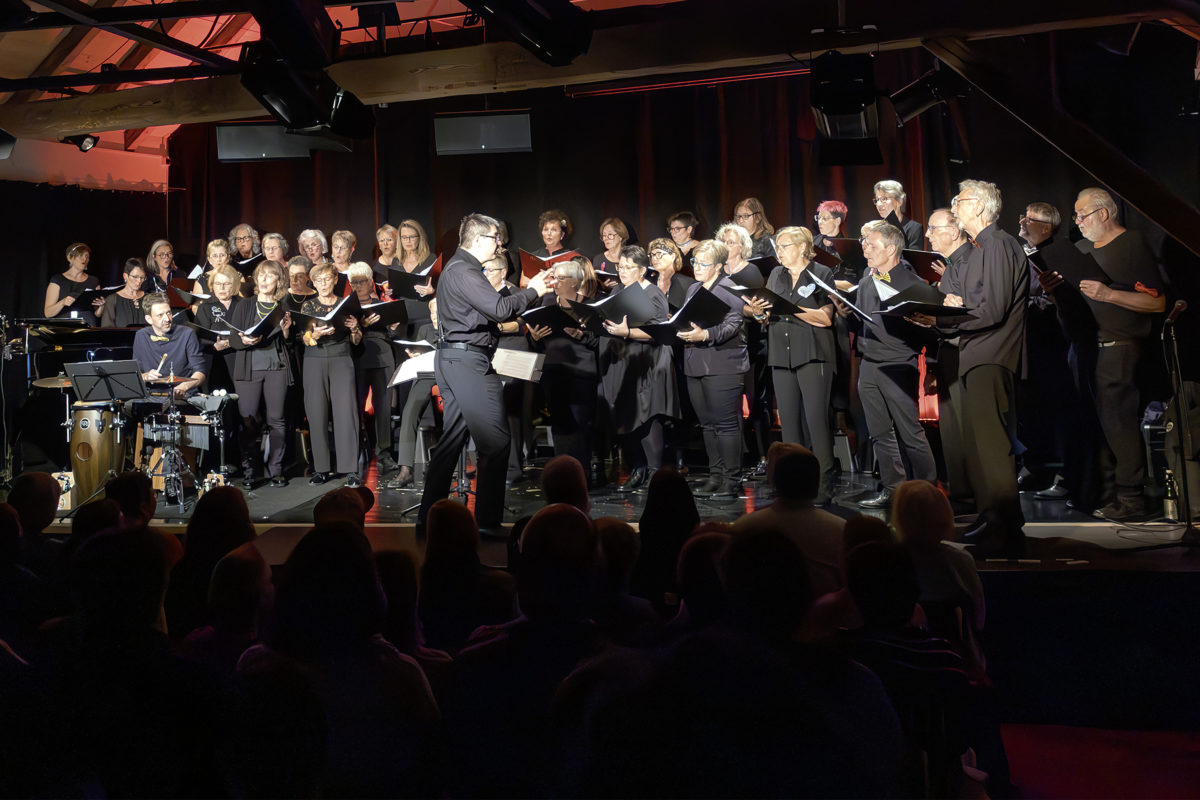 Murten | Der Chor Muntelier präsentierte am letzten Wochenende im „KiB – Kultur im Beaulieu“ an drei Abenden sein Konzert zum Thema „Cinéma“. Eine farbige Palette von speziell für Chor arrangierten Stücken, von Action-Film zu Filmkomödie, Musical, Zeichentrickfilm, Thriller und Romanze, bot manchen musikalischen Leckerbissen. Die Sängerinnen und Sänger, unter der Leitung von Matthias Bachmann, und die Begleitband mit Mélanie El-Khoury, Klavier, Lukas Kaufmann, Schlagzeug, und Marius Vancea, Kontrabass, überraschten durch viel Freude, Humor und Enthusiasmus das zahlreich erschienene Publikum.