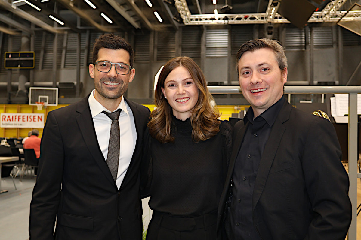 MG Gurmels: Michael Sallin, Dirigent, Claudine Zwahlen, Co- Präsidentin, und Dominic Tschümperlin, Co-Präsident.