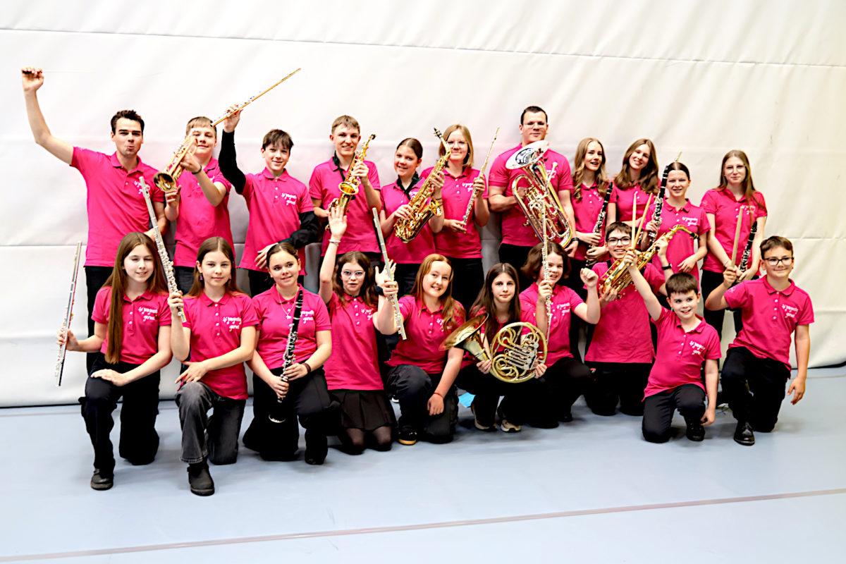 Die Jungmusig Gurmels mit ihrem Dirigenten Adrian Meuwly (oben links).