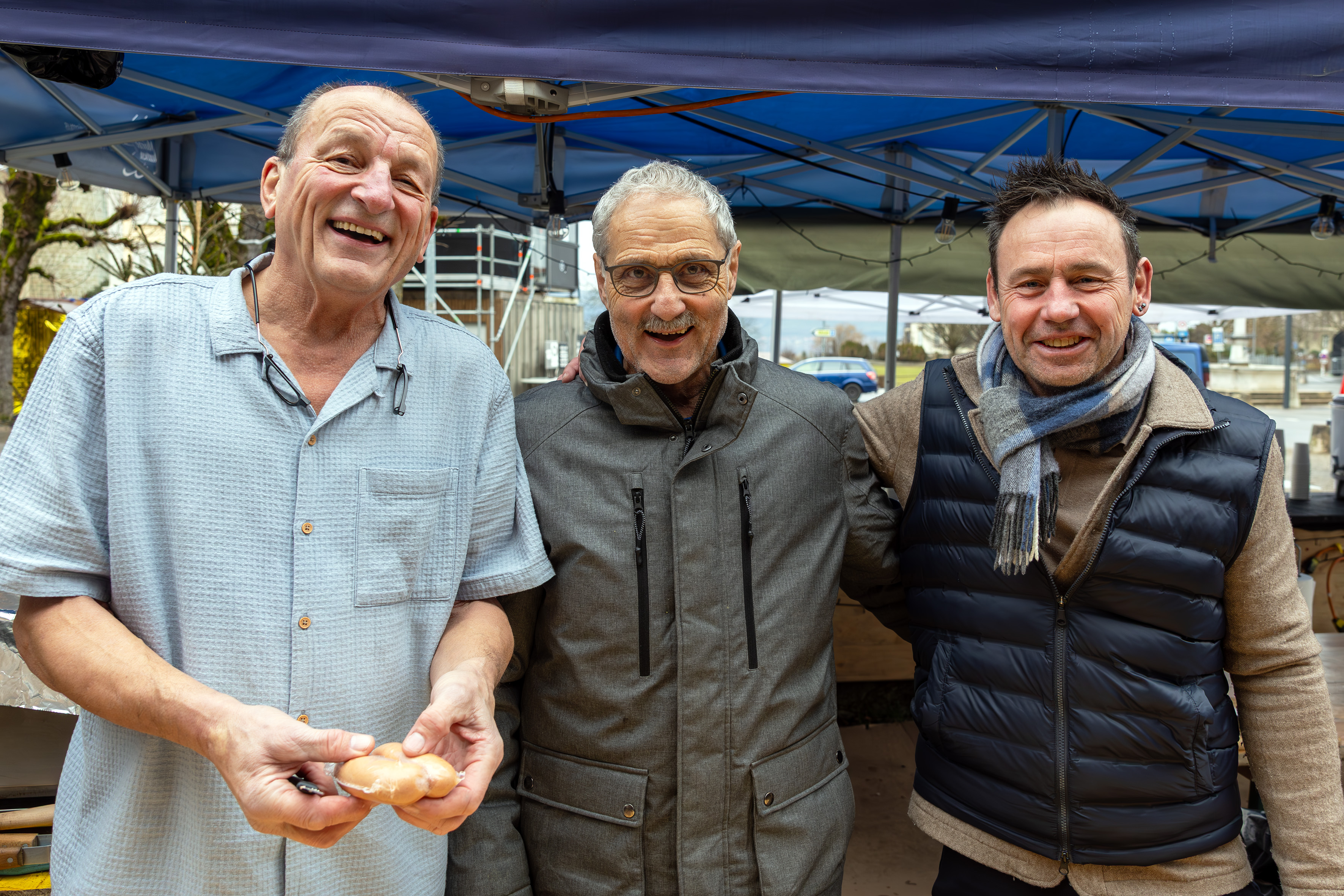 Dädu Marthaler, Muntelier, Bäggu Lüthi und Rolf Hügli, beide Murten.