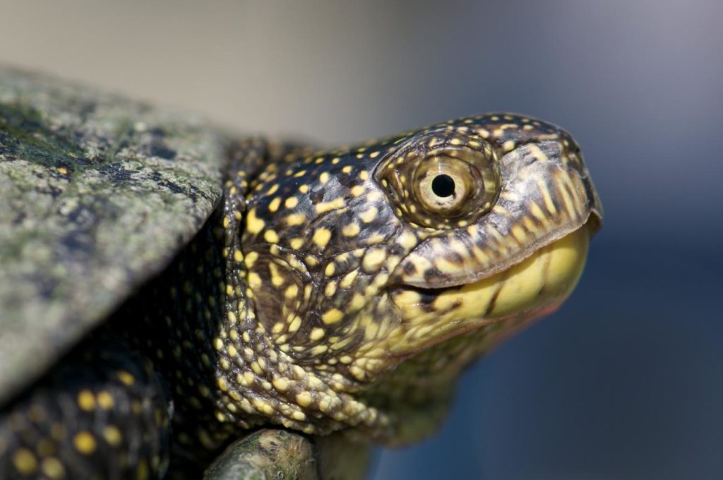 An den gelben Punkten am Kopf und Gliedmassen ist die europäische Sumpfschildkröte zu erkennen.