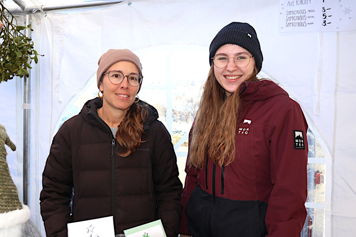 Noélie und Emilien mit ihrem Pomponmonster-Stand.